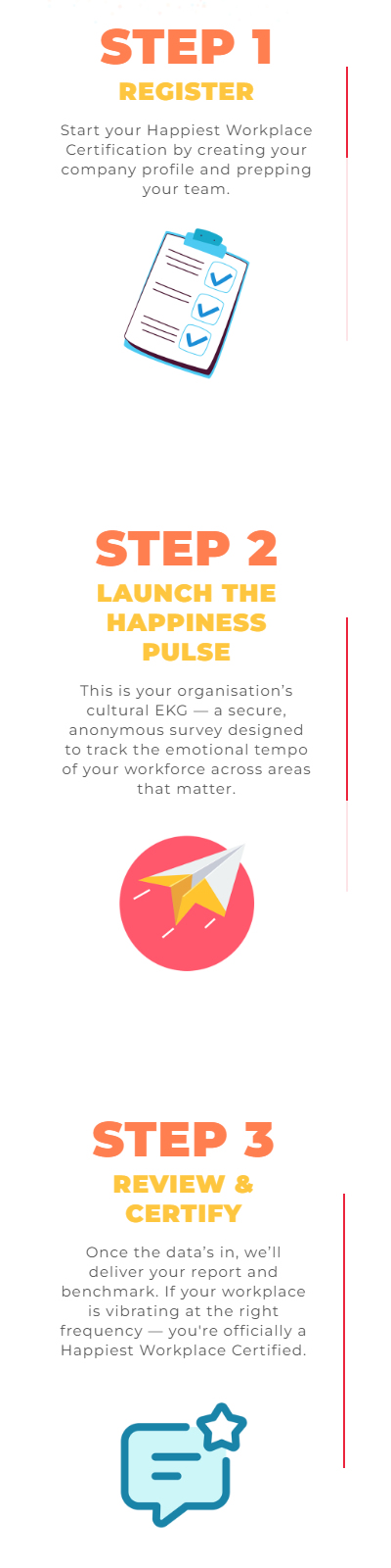 - At the core of the certification lies The Happiness Pulse. A research-backed employee survey that captures the emotional heartbeat of your workplace.